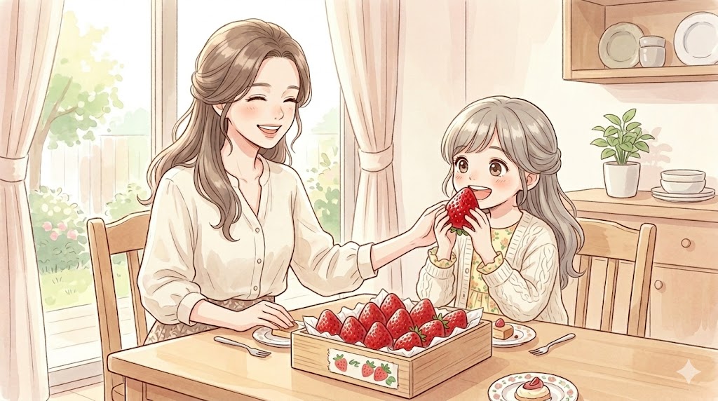 ゆなちの大好きなイチゴは毎年欠かさず注文。特に福岡のあまおうが届いたときは、ゆなちのテンションが上がるのがわかります。大きくて甘くて、本当においしい。おすそ分けした両親や兄夫婦にも毎年喜んでもらえていて、ふるさと納税のおかげで少し豊かな気持ちになれています。